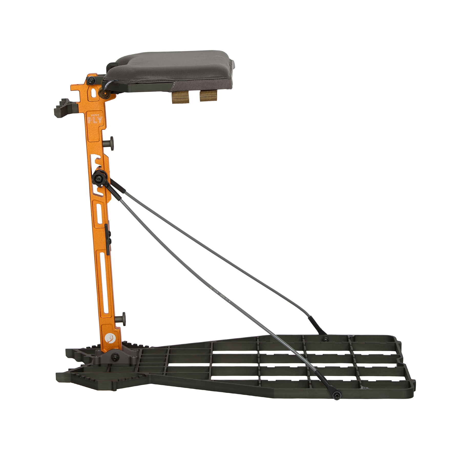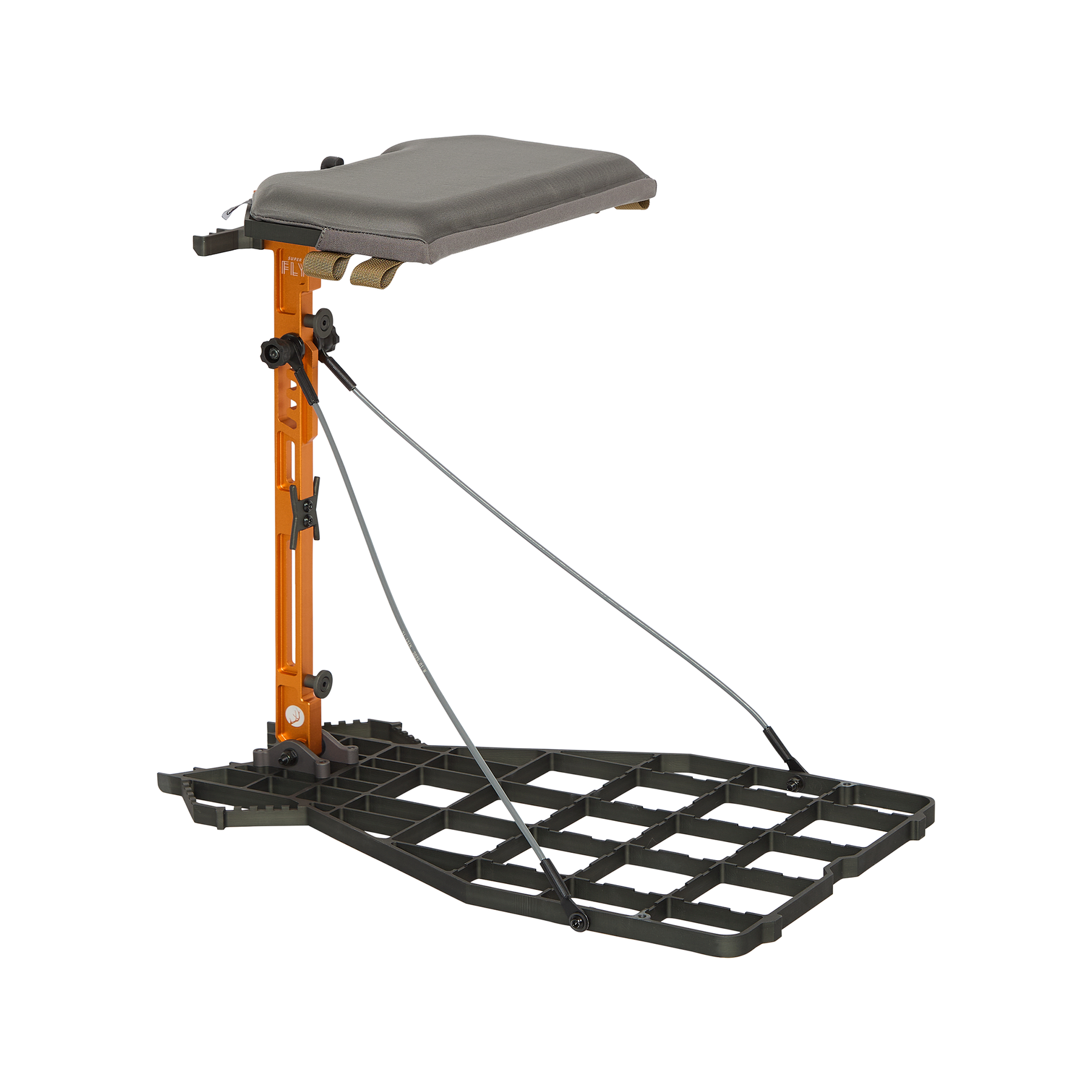 The SUPER FLY features our patented quarter-turn Shelf Lock system, locking the seat to the I-beam and turning your stand into the ultimate gear and meat hauler.