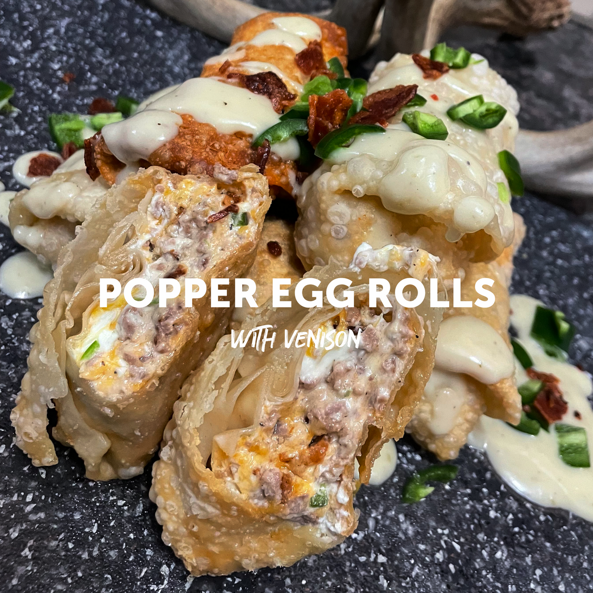 For an extra kick, serve with avocado crème sauce, extra diced jalapeños, and crispy bacon bits. Slice in half and enjoy the ultimate wild game treat!