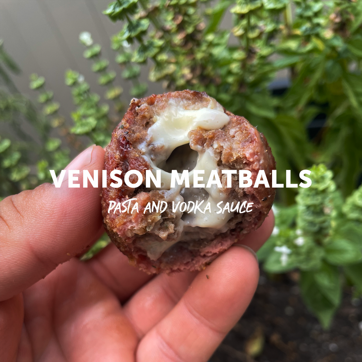 Serve pasta topped with vodka sauce in a bowl, place the venison meatballs on top, and garnish with fresh basil and shaved Parmesan.